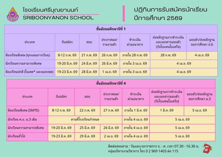 หรือ ทาง www.sb.ac.th และ facebook ของทางโรงเรียน